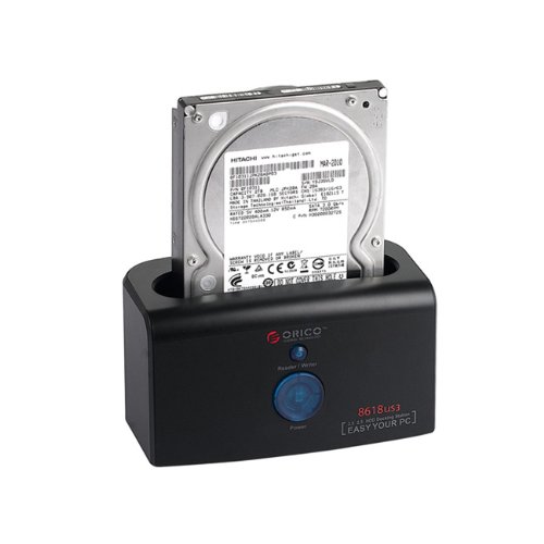 ORICO 8618US3 docking station USB 3.0 para 2,5 "y 3,5" SATA disco duro (SATA I / II / III) incluyendo 1 USB3 cable y adaptador negro .